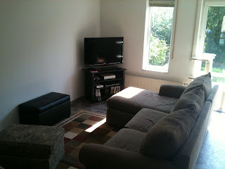 So, I know people have been wanting pictures of our house here but I was avoiding it until I was able to unpack everything. Once everything was unpacked I was still avoiding it because there are so many things I want to get before I show pictures. Well, with the possible government shut down of funds there is a possibility that we won't get paid. Needless to say, I'm being very frugal right now just in case so I'm not exactly running out to buy rugs and accent tables and vases and flowers and such. So, I decided to just give in and take the pictures, just know that this is unfinished but it'll give you an idea.