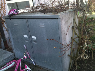 This is where we keep two of our 4 trash cans, they are really big into recycling here so we have separate containers for plastic, paper, bio (or biodegradable) and regular trash.